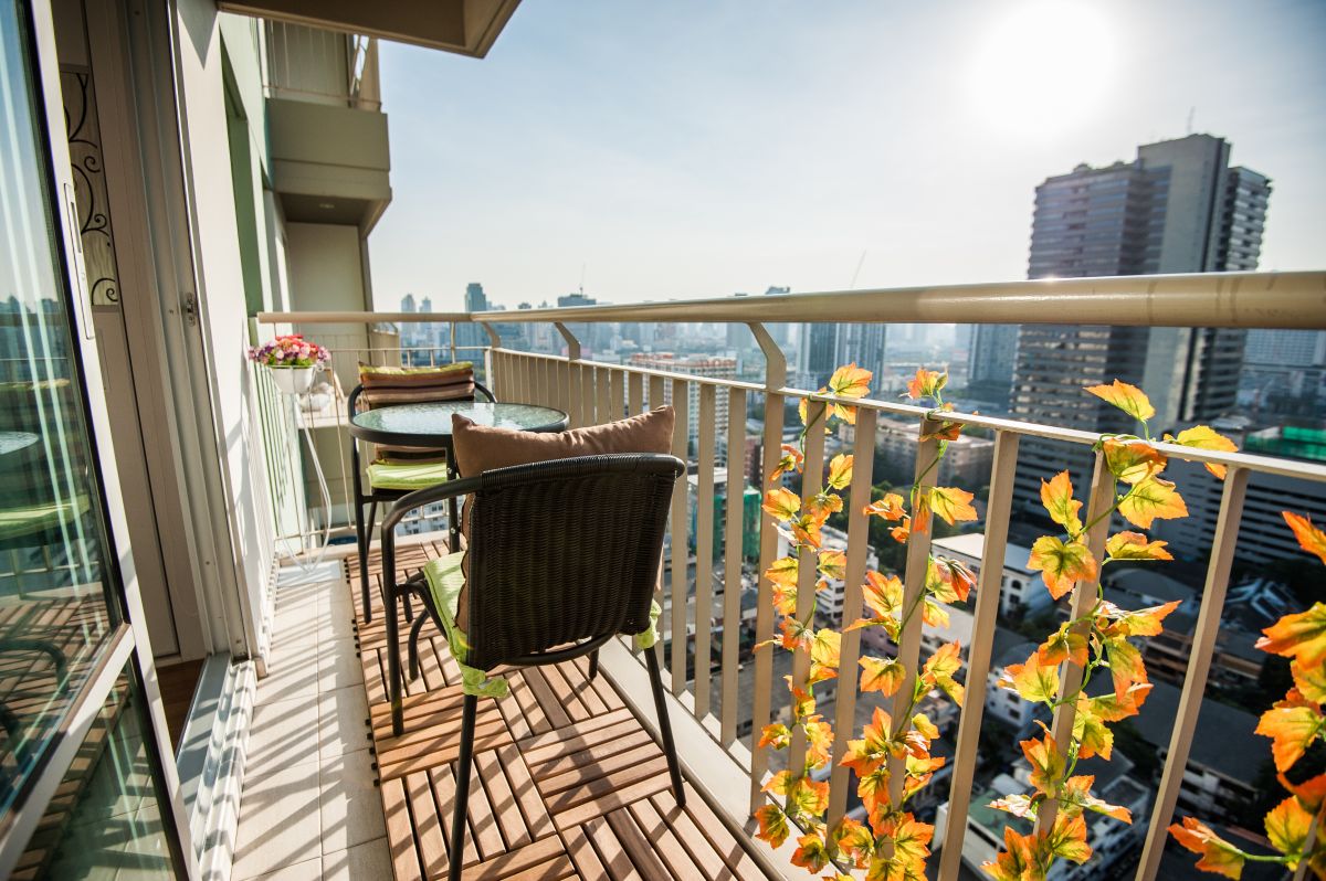 Чаще всего балкон рассматривают как лаунж-зону. Летними вечерами здесь можно наслаждаться окружающим пейзажем, попивая чай или кофе.