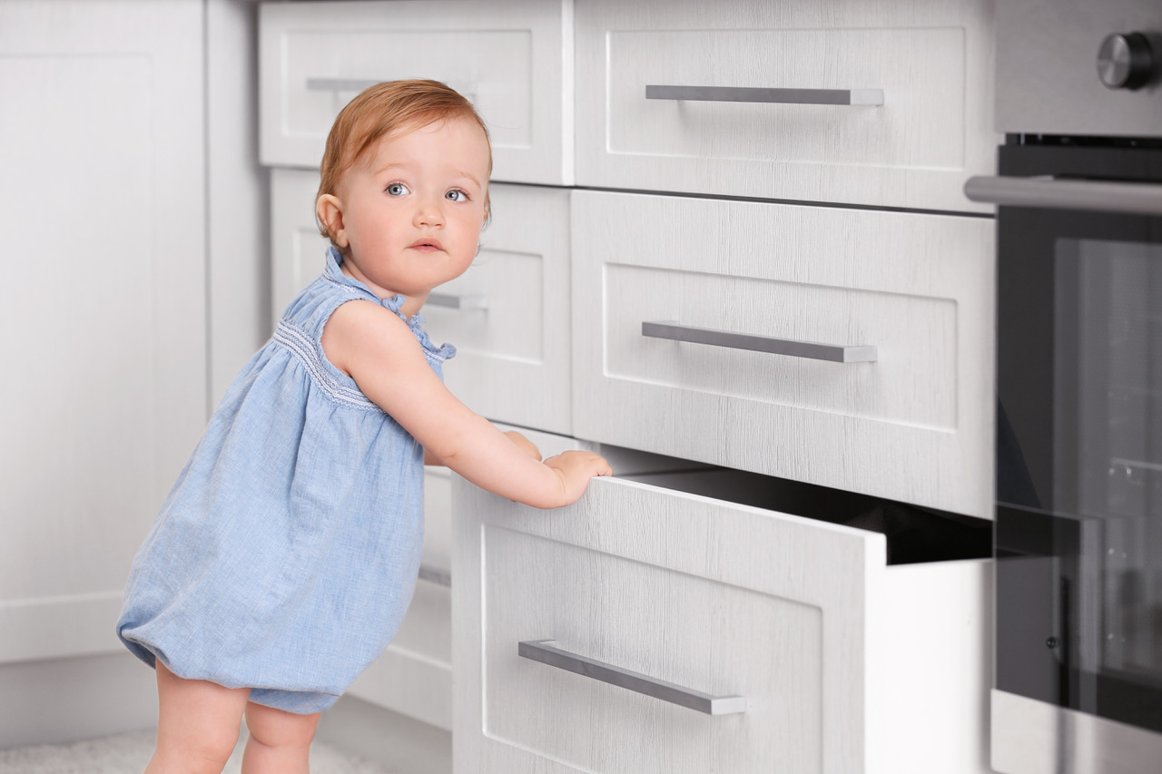 Мебель должна быть прикреплена к стенам, а не только стоять на ножках. Углы должны быть округлыми или защищены специальными накладками – протекторами (впрочем, хорошо бы закрыть протекторами все углы в квартире). Розетки – с заглушками, и никаких открытых проводов.