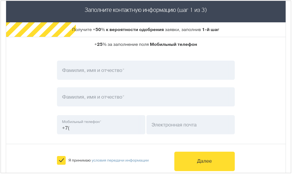 В заявке я указала основные данные: ФИО, номер мобильного телефона, электронную почту.
