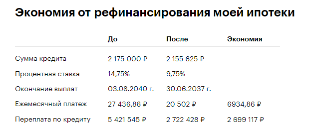У меня была цель снизить ставку по ипотеке минимум на 2 процентных пункта. Срок я хотела оставить прежним, чтобы уменьшить ежемесячный платеж.