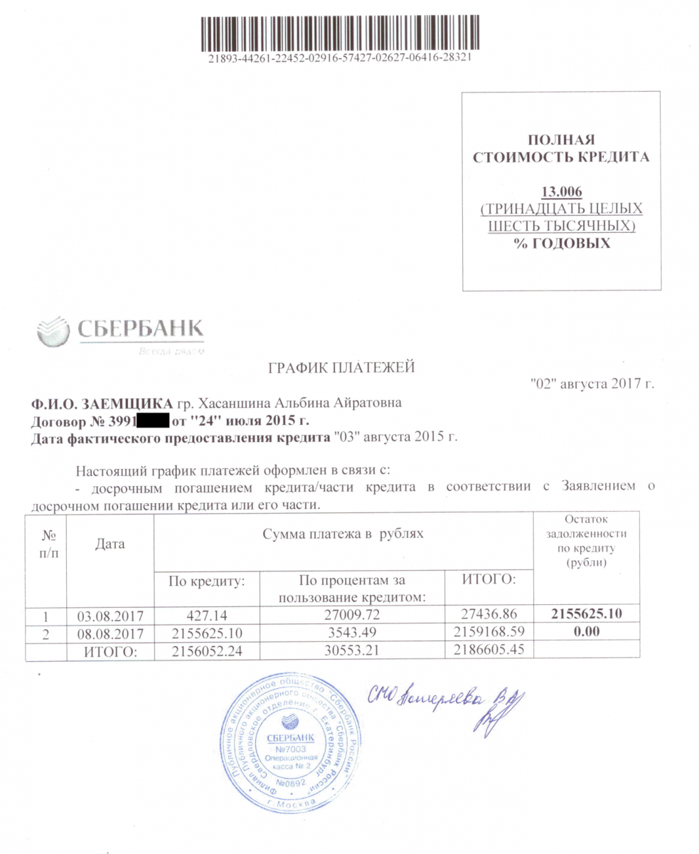 Пока я собирала документы, старый банк продолжал ежедневно начислять проценты по ипотеке. 8 августа, в день полного досрочного погашения, по кредиту вместе с процентами набежало 2 159 168 рублей 59 копеек. У нового банка я просила только 2 155 625 рублей 10 копеек. Разницу 3543,49 Р пришлось доплатить самой.