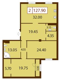 Общая площадь - 127.9 кв.м