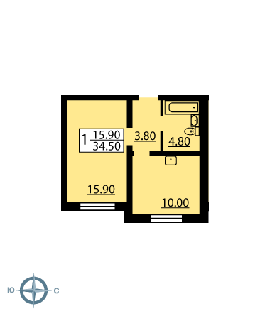 Жилая - 15.9 кв.м, Кухня - 10 кв.м