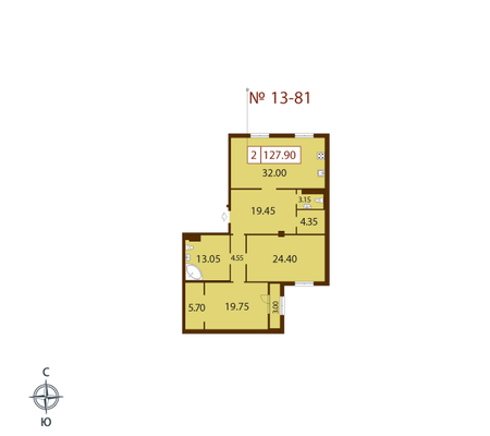 Общая площадь - 127.9 кв.м