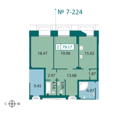 Общая площадь - 78.6 кв.м