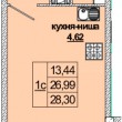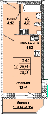 Общая площадь - 31.33 кв.м