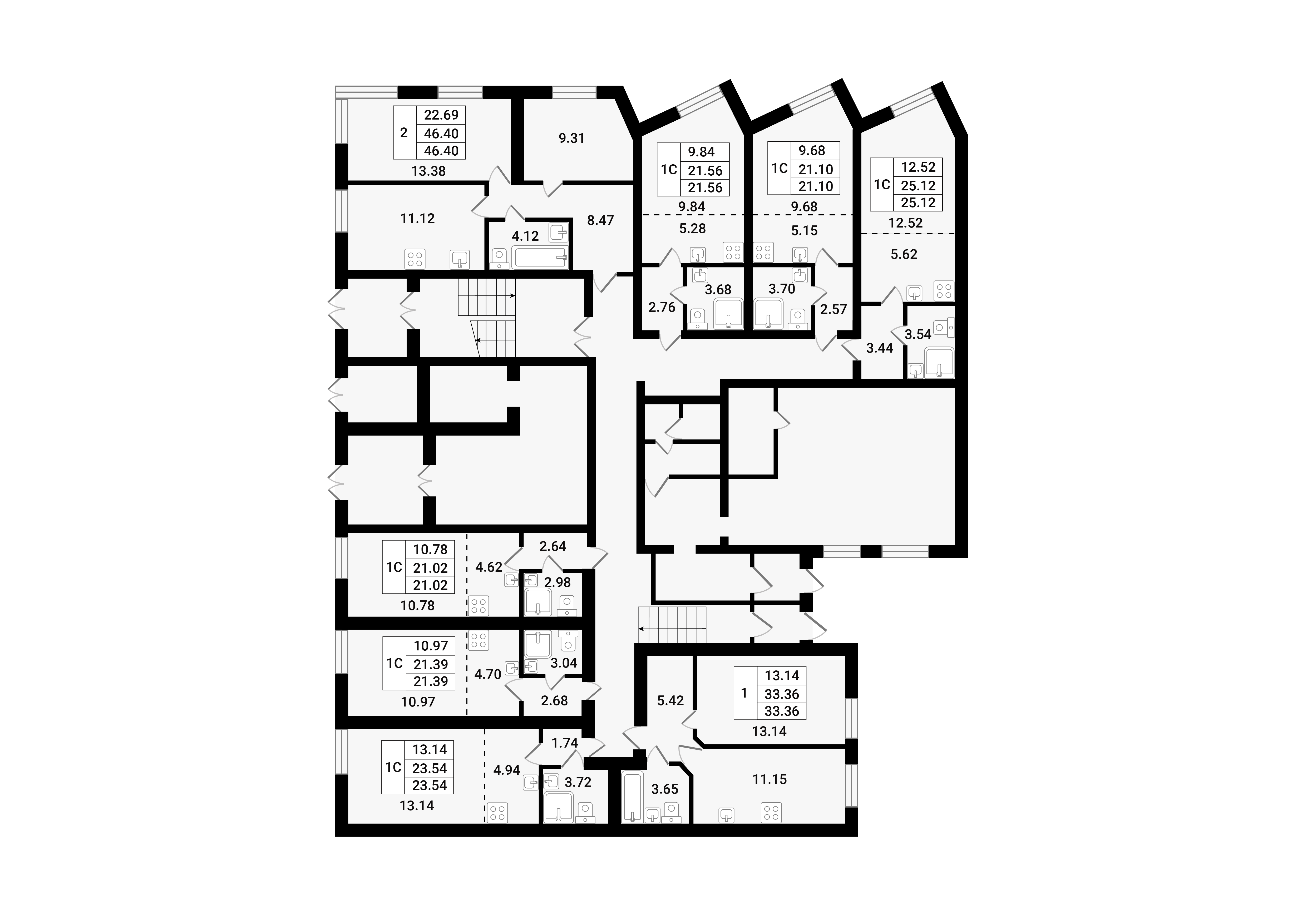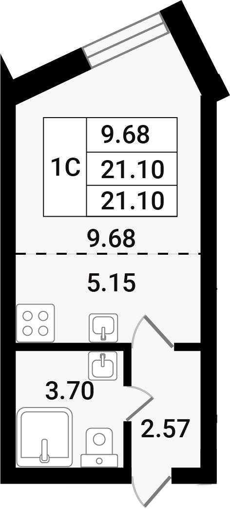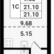 Общая площадь - 21.1 кв.м