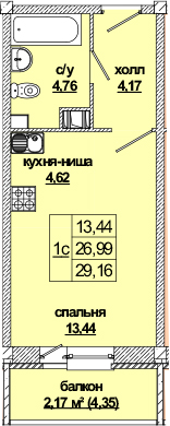 Общая площадь - 31.3 кв.м