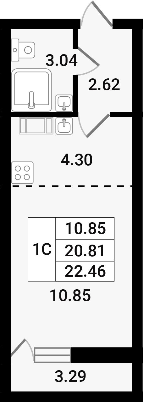 Общая площадь - 24.11 кв.м
