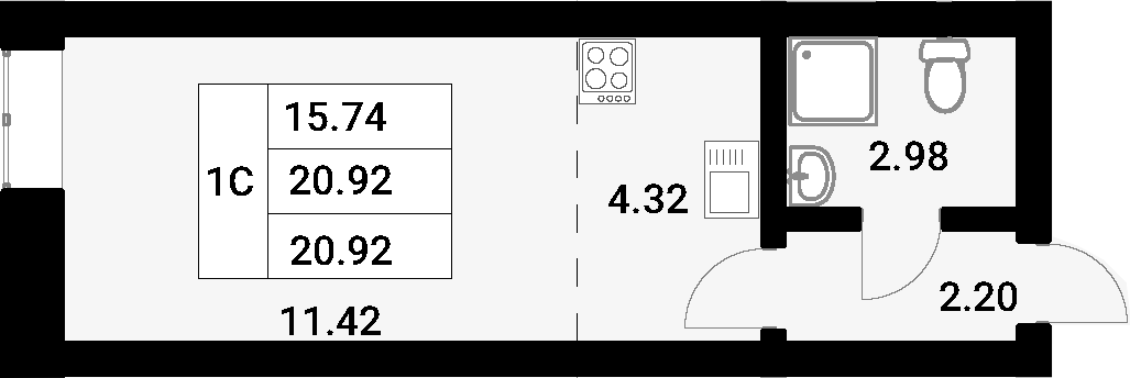 Общая площадь - 20.92 кв.м