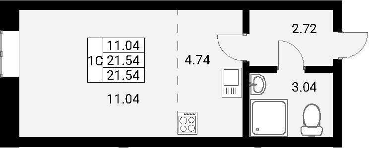 Общая площадь - 21.54 кв.м