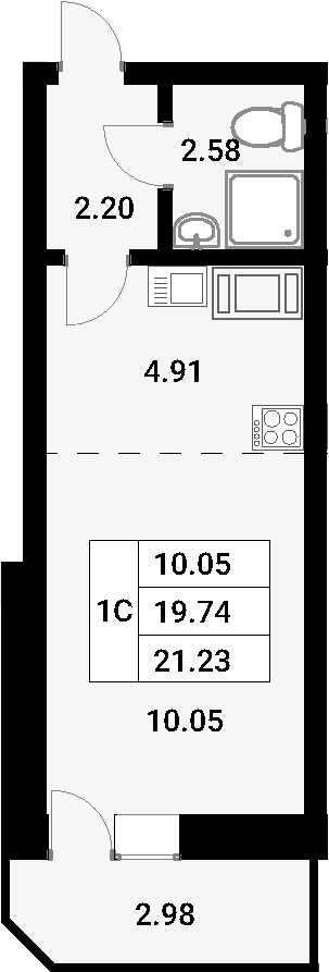 Общая площадь - 22.72 кв.м