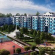 Являясь центром композиции придомового пространства, он объединяет площадки для семейного отдыха с детьми и для активного времяпрепровождения.