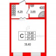 Площадь комнат - 19.4 кв.м
