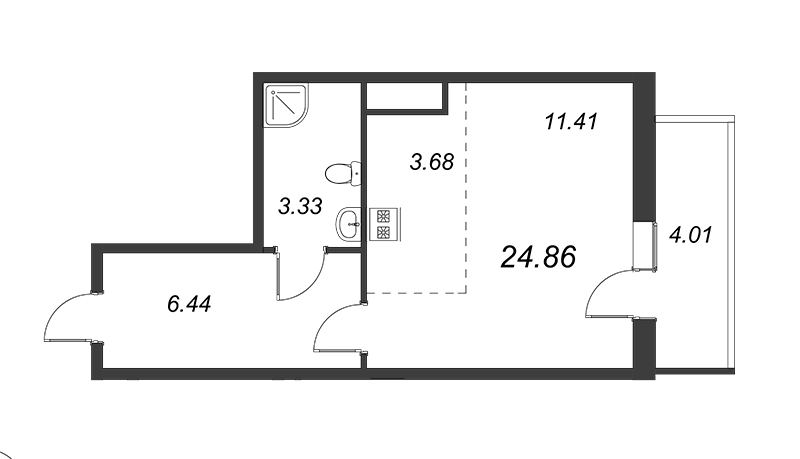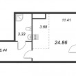 Жилая - 11.41 кв.м, Кухня - 3.68 кв.м