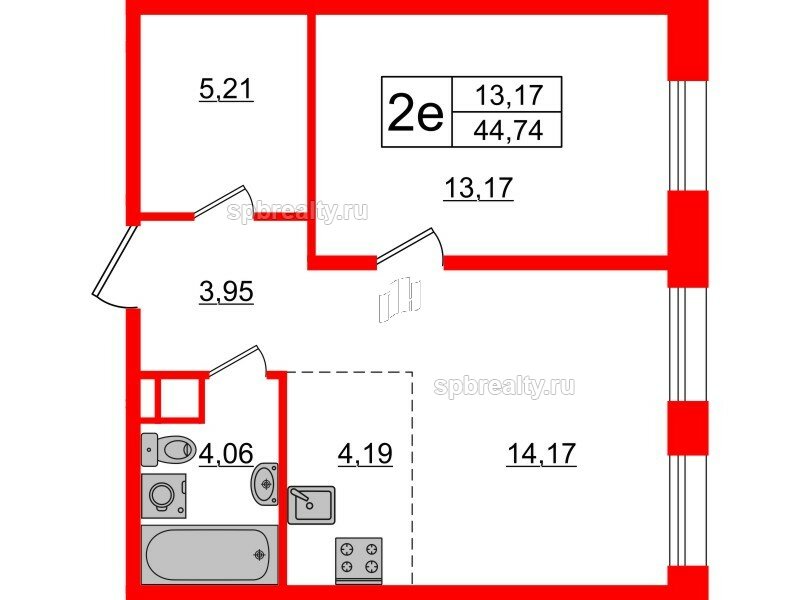 Жилая - 27.34 кв.м, Кухня - 4.19 кв.м