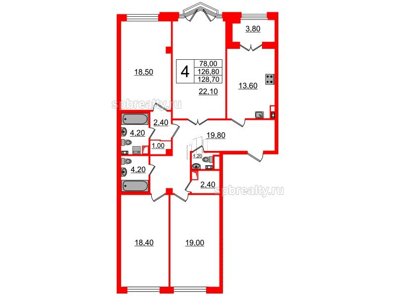 Общая площадь - 126.8 кв.м