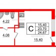 Площадь комнат - 15.4 кв.м
