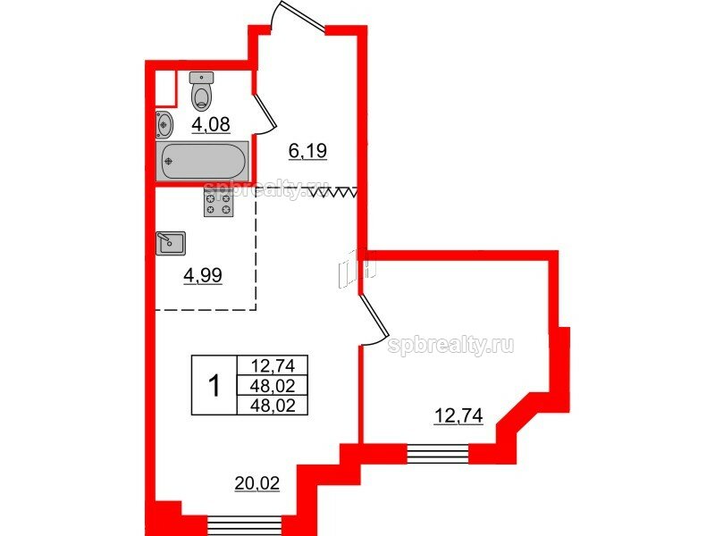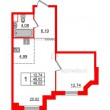 Жилая - 12.74 кв.м, Кухня - 25.01 кв.м
