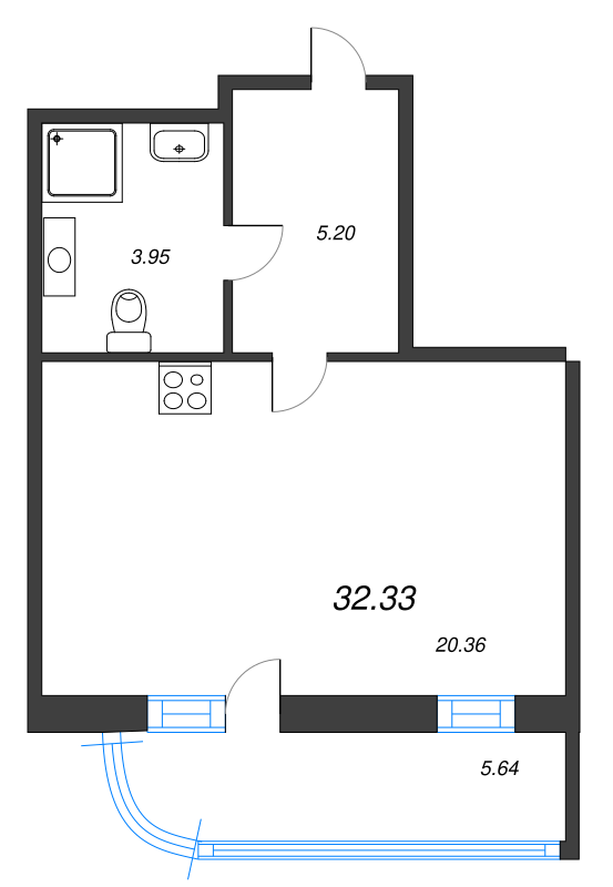 Общая площадь - 32.33 кв.м