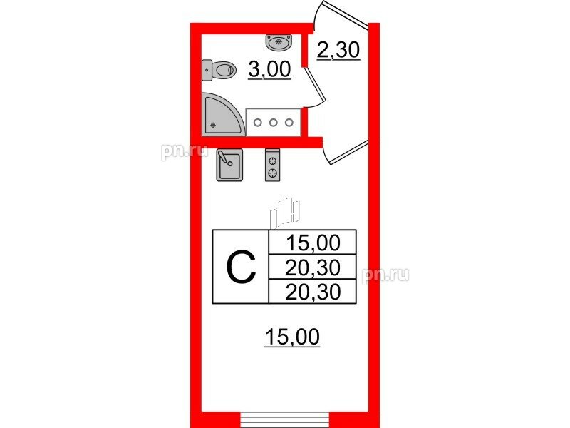 Общая площадь - 20.3 кв.м