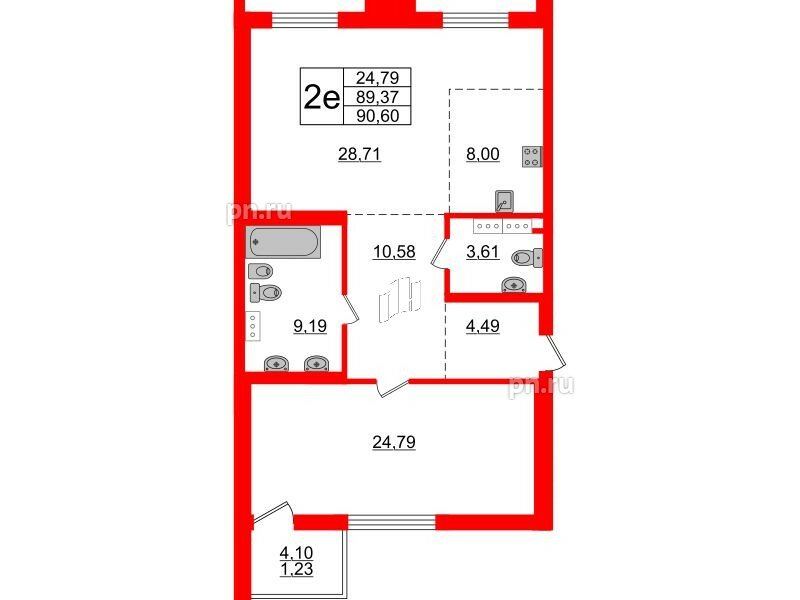 Общая площадь - 91.19 кв.м