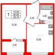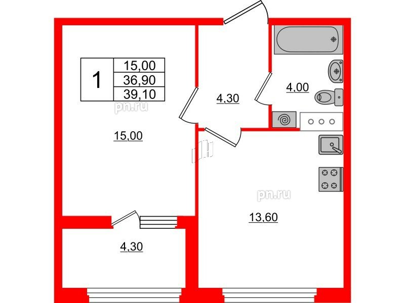 Общая площадь - 39.1 кв.м