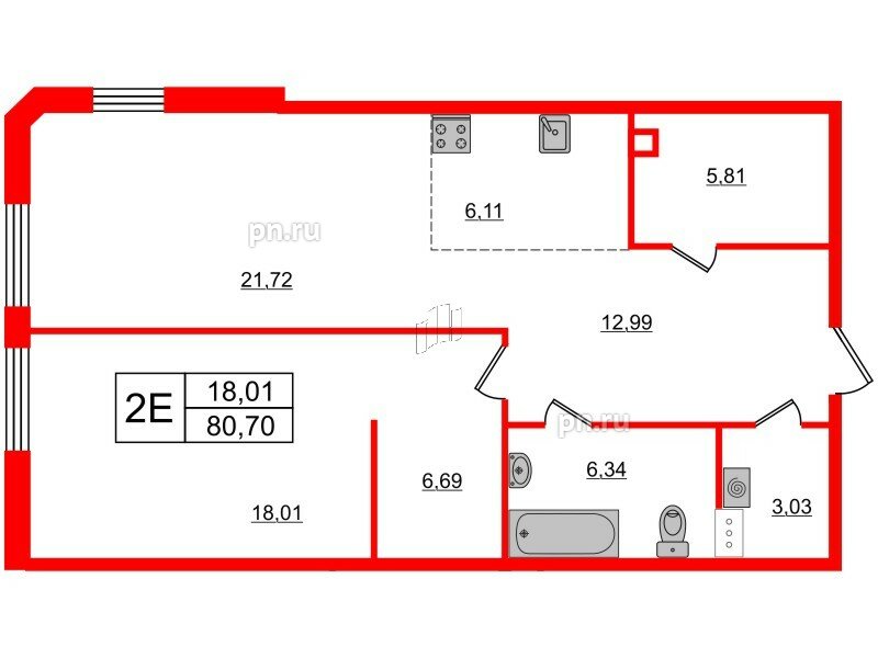 Жилая - 18.01 кв.м, Кухня - 27.83 кв.м