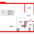 Жилая - 28.91 кв.м, Кухня - 4.76 кв.м