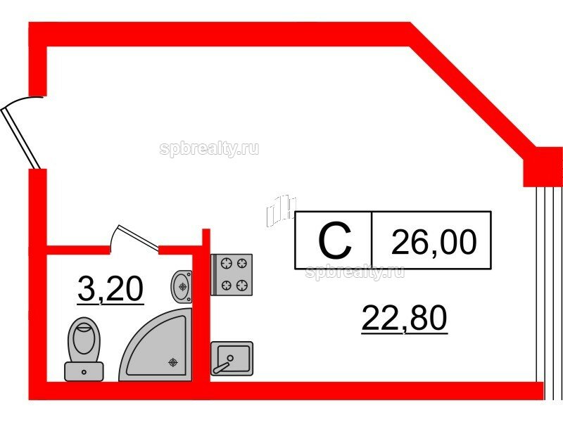 Общая площадь - 26 кв.м