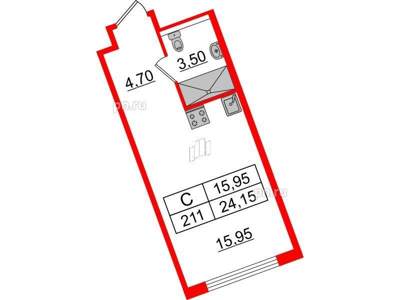 Общая площадь - 24.15 кв.м