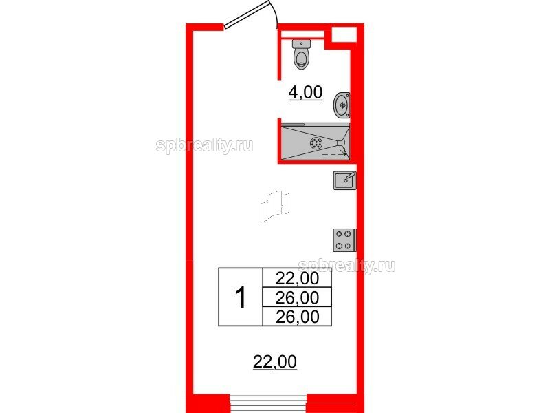 Общая площадь - 26 кв.м