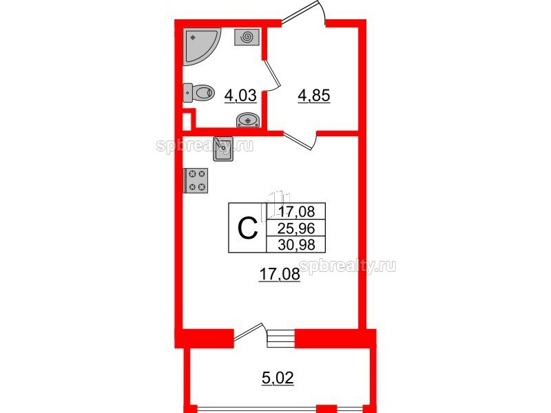Общая площадь - 25.96 кв.м