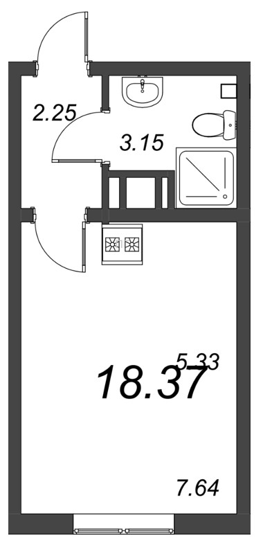 Жилая - 7.64 кв.м, Кухня - 5.33 кв.м