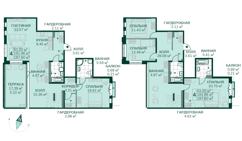 Общая площадь - 197.6 кв.м