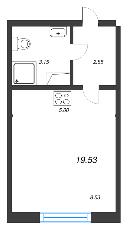 Общая площадь - 19.53 кв.м