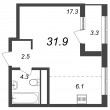 Общая площадь - 31.9 кв.м
