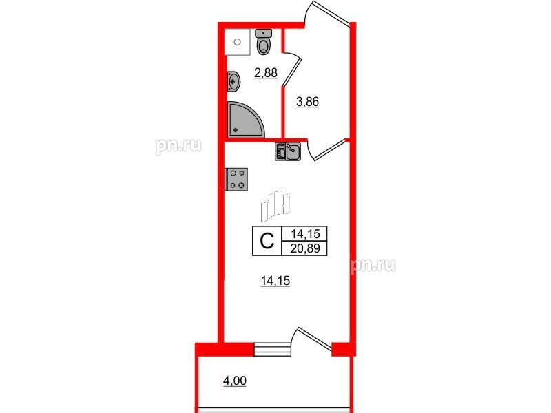 Общая площадь - 20.89 кв.м