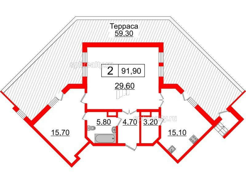 Общая площадь - 91.9 кв.м