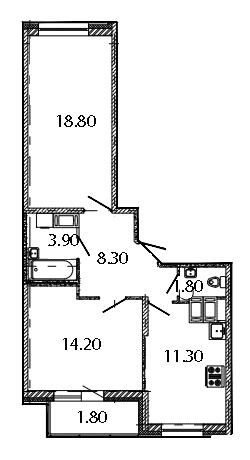 Общая площадь - 59.9 кв.м