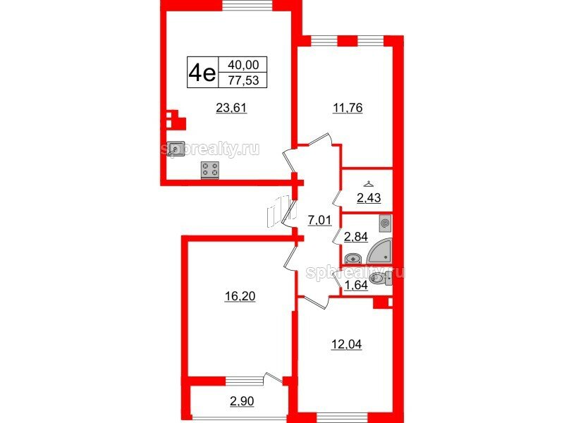 Жилая - 40 кв.м, Кухня - 23.61 кв.м