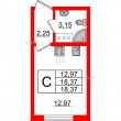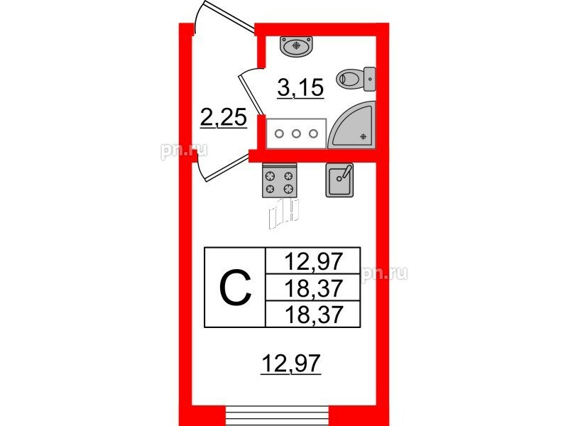 Общая площадь - 18.37 кв.м