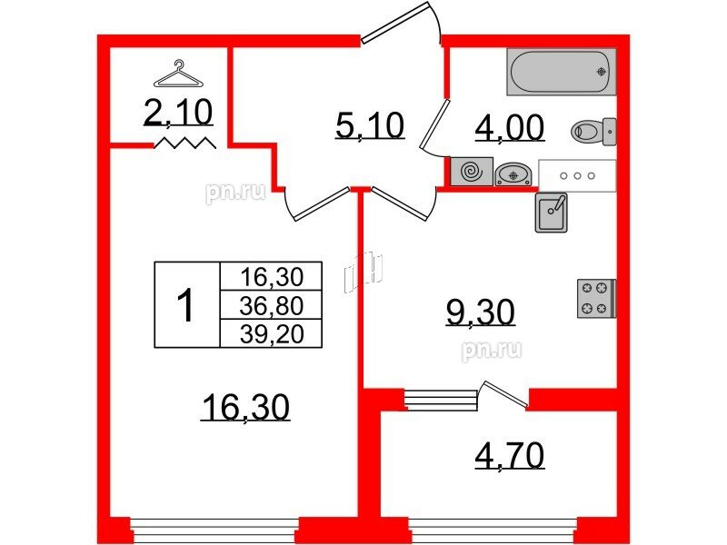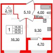 Общая площадь - 39.2 кв.м