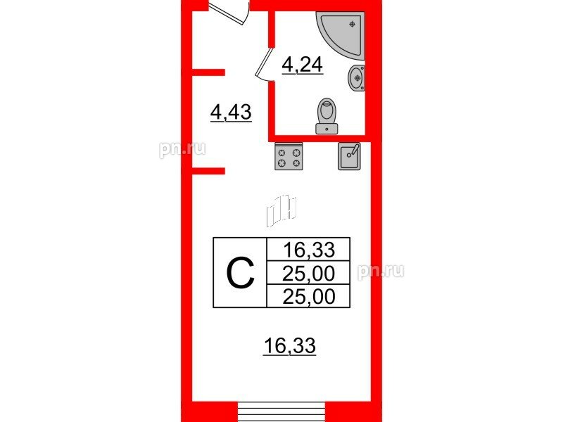 Студия, 25 кв.м, 3 этаж — 5 278 000 руб. (211 120 руб./м2)