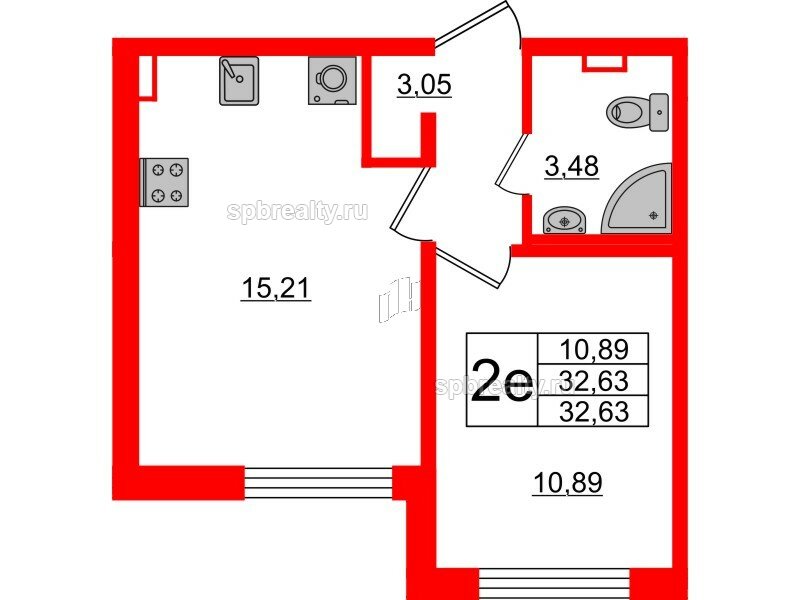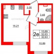 Жилая - 10.89 кв.м, Кухня - 15.21 кв.м
