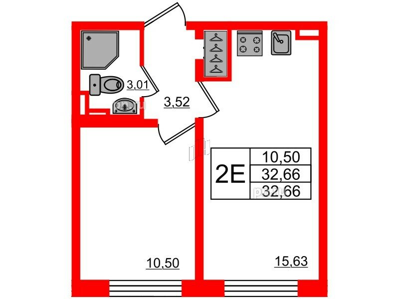 Общая площадь - 32.5 кв.м