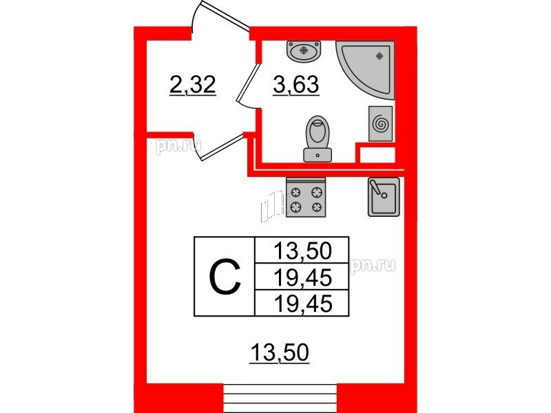 Студия, 19.45 кв.м, 2 этаж — 5 050 000 руб. (259 640 руб./м2)