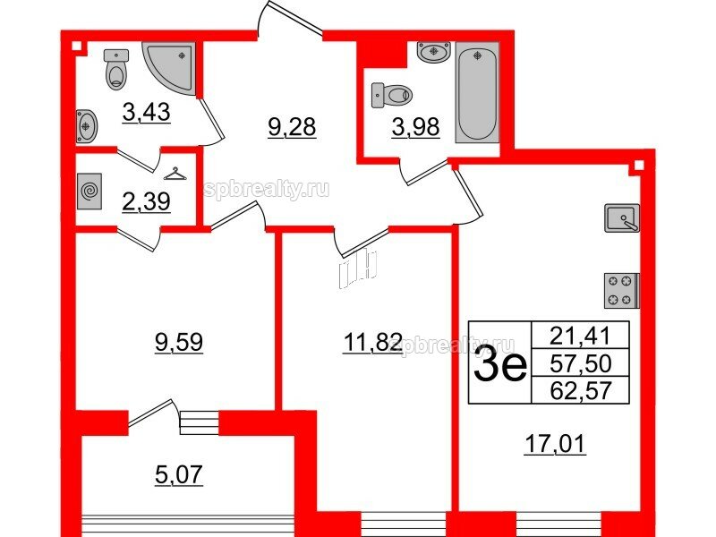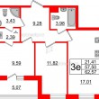 Жилая - 21.41 кв.м, Кухня - 17.01 кв.м