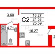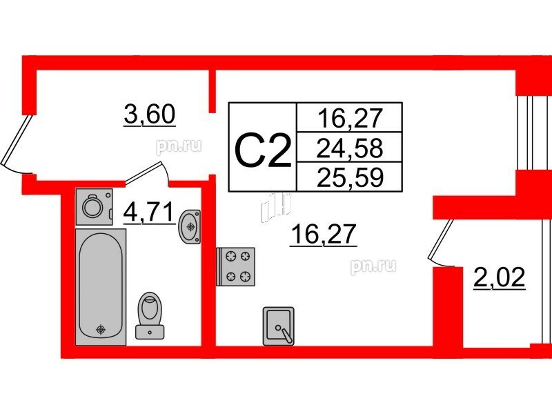 Общая площадь - 25.59 кв.м