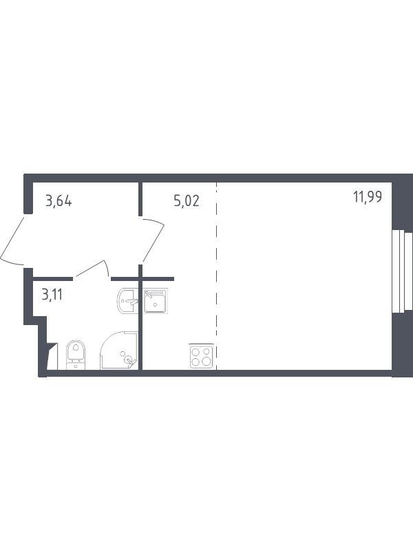 Студия. Отделка. Санузел: совмещенный. Ипотека.